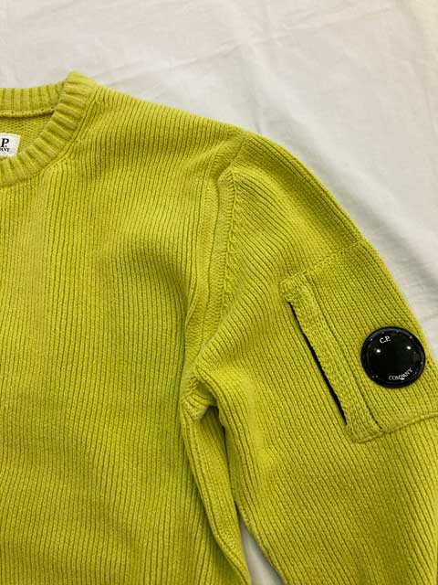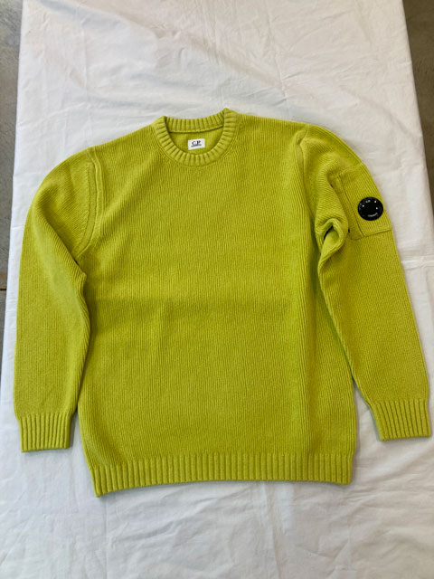 コットン・シェニール製のクルーネックセーター。C.P.カンパニーのアイコンであるレンズがあしらわれ、袖口と裾はリブ編み。ガーメントダイ済み。ゲージ7、レギュラーフィット。