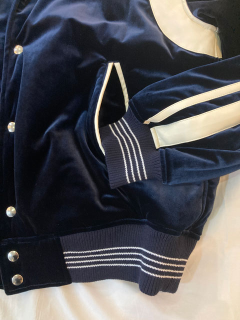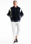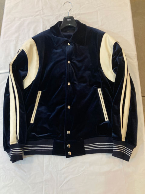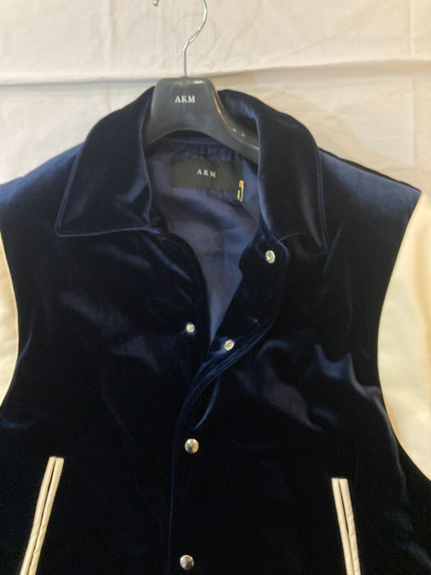 VINTAGEの襟付きVARSITY JACKETをデザインソースに採用し、現代に適したややゆとりがあるシルエットにてパターンメイキングしたAKM新作のバーシティジャケットです。