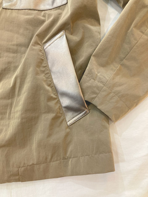 アウトドアメーカーの名作をアレンジし、モディファイした今作。レトロな90年代テイストそのままに立ち襟からフード仕様に変更し通常は合繊のフリースが表地ですが、1PIU1UGUALE3ではLIMONTA社のナイロンタフタにて製作しました。別布も上質なエコレザー、ZIPPERは軽量化を狙いYKK社製の1PIU1オリジナルのビスロンファスナー、フード紐は1PIU1ロゴ入りの弾丸チップ付のスピンドルを採用しています。