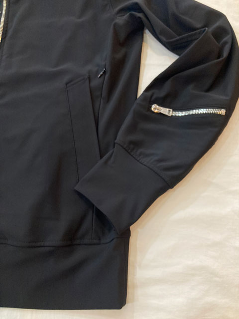 プレミアムストレッチファブリック「サラベナ」を使用したツイルトリコット素材。強撚糸ならではのシャリ感とドライタッチに加え、360°全方向に伸びるストレッチ性が特徴。軽量ながらハリがありスポーティすぎない上品な風合いで、移動やリラックスウェアに最適です。