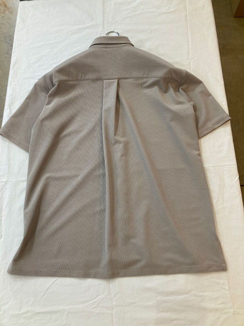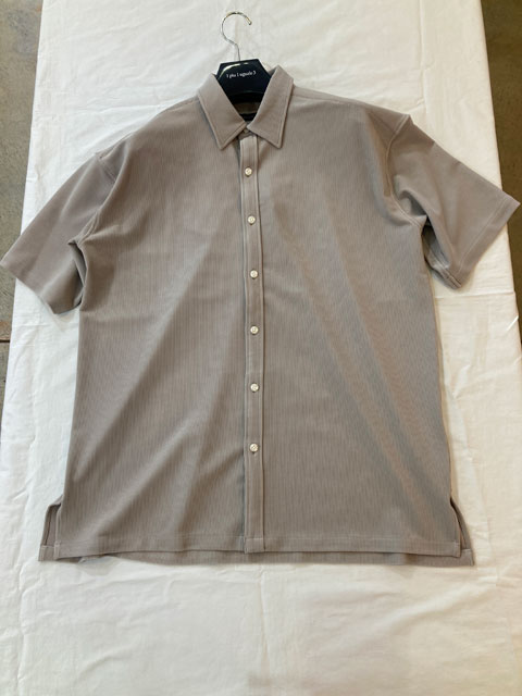 PIU1UGUALE3より半袖BIG SHIRTSの登場です。ドロップショルダーで身巾を十分にとったオーバーサイズシャツです。裾はラウンドさせず、短過ぎず長過ぎない絶妙な丈感に仕上げています。衿はやや小ぶりのレギュラーカラー。釦はロゴ入り本水牛釦を採用しています。今季は刺繍もプリントも入れず、完全に無地で仕上げ、ベルトレススラックスとのセットアップ提案です。
